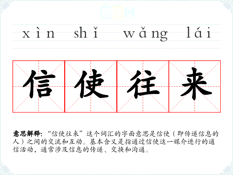 “信使往来”这个词汇的字面意思是信使(即传递信息的人)之间的交流和互动。基本含义是指通过信使这一媒介进行的通信活动,通常涉及信息的传递、交换和沟通。