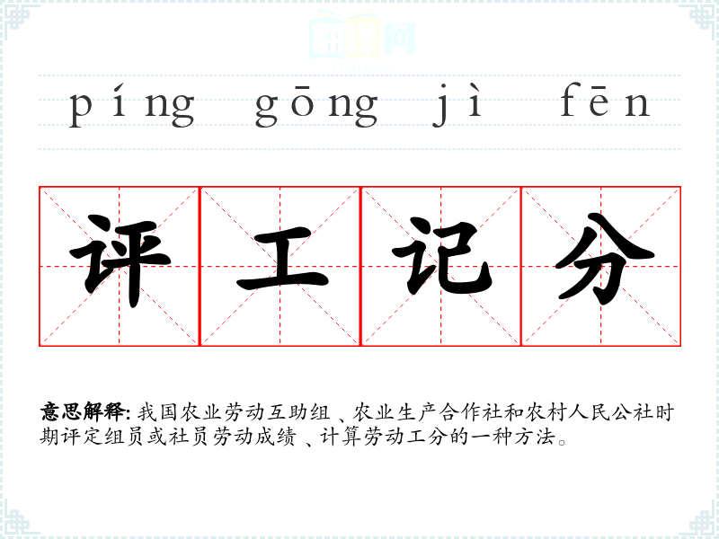 我国农业劳动互助组﹑农业生产合作社和农村人民公社时期评定组员或社员劳动成绩﹑计算劳动工分的一种方法。