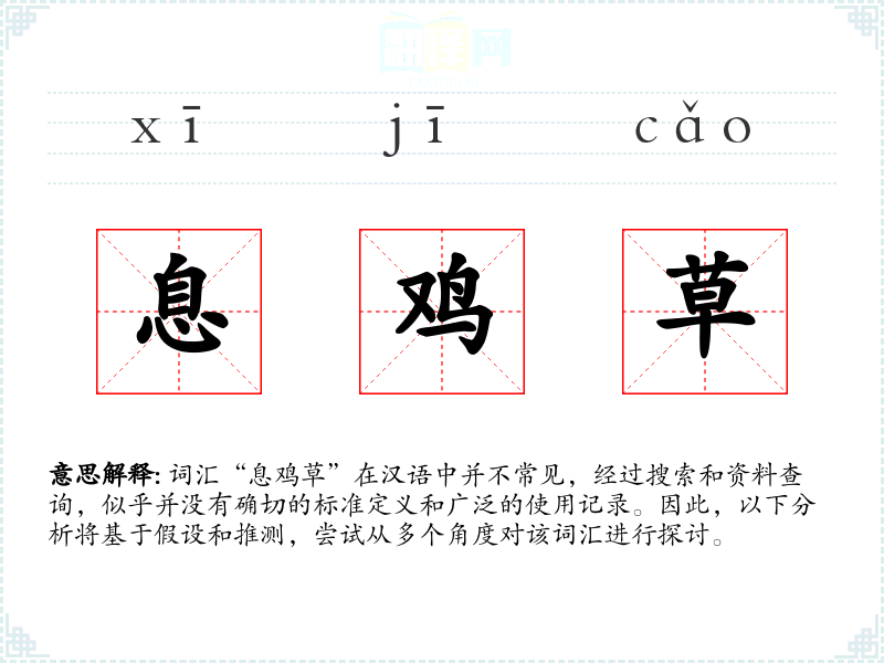 词汇“息鸡草”在汉语中并不常见,经过搜索和资料查询,似乎并没有确切的标准定义和广泛的使用记录。因此,以下分析将基于假设和推测,尝试从多个角度对该词汇进行探讨。