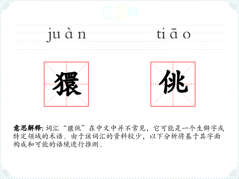 词汇“獧佻”在中文中并不常见,它可能是一个生僻字或特定领域的术语。由于该词汇的资料较少,以下分析将基于其字面构成和可能的语境进行推测。