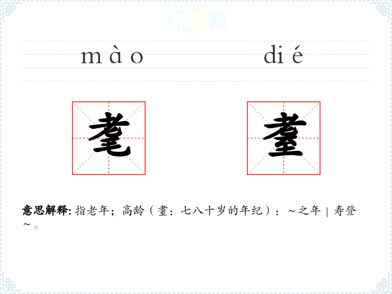 指老年;高龄(耋:七八十岁的年纪):~之年|寿登~。