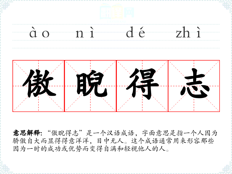 - 文学语境:在文学作品中,这个成语常用来描绘角色的性格特点,如《红楼梦》中的贾宝玉在某些情境下可能会被描述为“傲睨得志”。