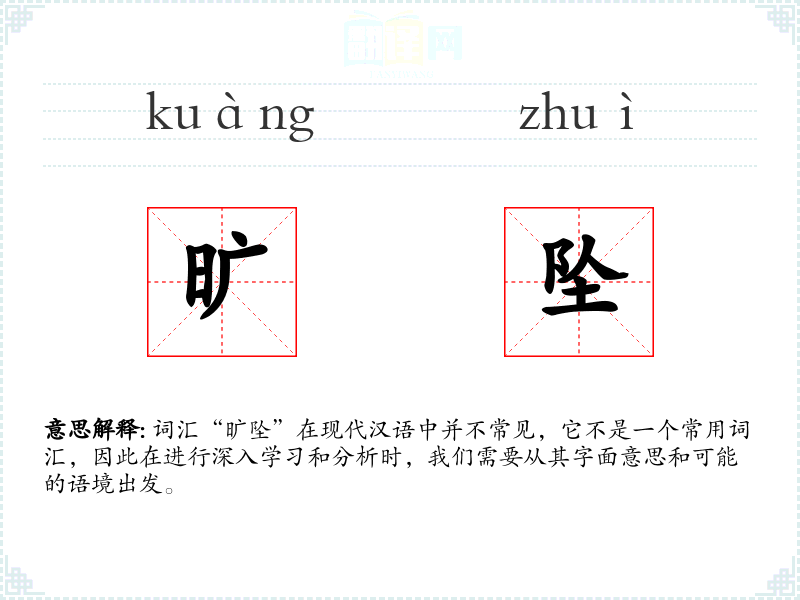 词汇“旷坠”在现代汉语中并不常见,它不是一个常用词汇,因此在进行深入学习和分析时,我们需要从其字面意思和可能的语境出发。