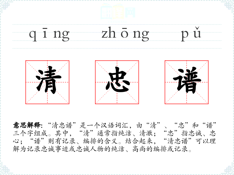 “清忠谱”这个词汇在古代文献中并不常见,它可能是现代人在特定语境下创造的词汇,用以表达对忠诚和纯洁的赞美。在古代,类似的表达可能更多地使用“忠烈传”或“忠臣录”等词汇。