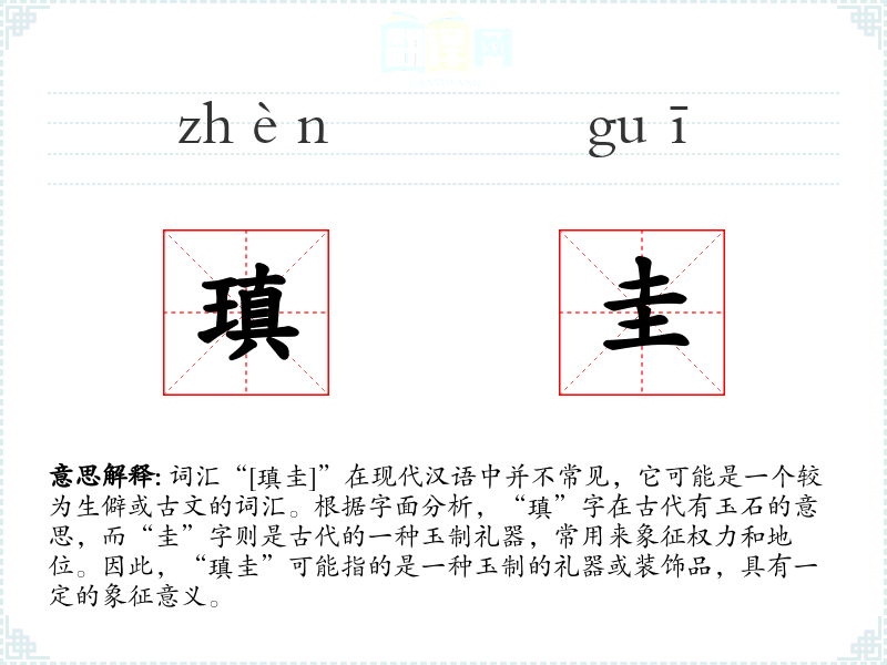 - 专业领域:在考古学或古代文化研究中,瑱圭可能被提及作为研究古代礼仪和文化的对象。