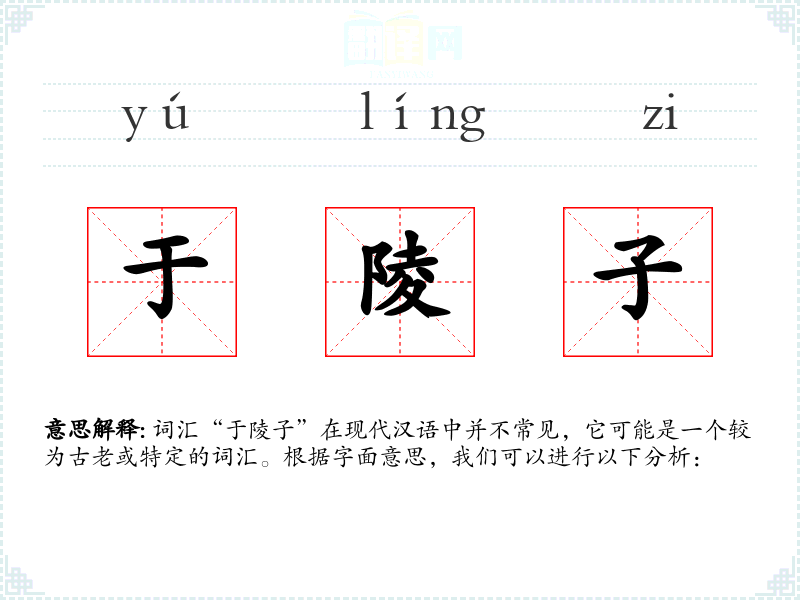 词汇“于陵子”在现代汉语中并不常见,它可能是一个较为古老或特定的词汇。根据字面意思,我们可以进行以下分析:
