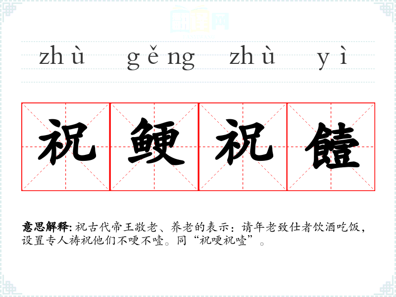 祝古代帝王敬老、养老的表示:请年老致仕者饮酒吃饭,设置专人祷祝他们不哽不噎。同“