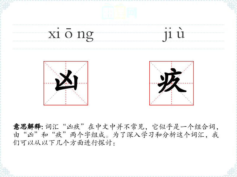 词汇“凶疚”在中文中并不常见,它似乎是一个组合词,由“凶”和“疚”两个字组成。为了深入学*和分析这个词汇,我们可以从以下几个方面进行探讨: