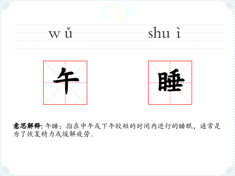 "午睡"的意思解释、午睡是什么意思由翻译网汉语词典查词提供。