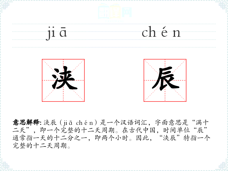 浃辰是一个具有深厚历史文化背景的词汇,虽然在现代汉语中使用较少,但它体现了古代对时间的精确划分和对时间周期的重视。在学*和使用这个词汇时,可以更好地理解和欣赏**古代的文化和时间观念。