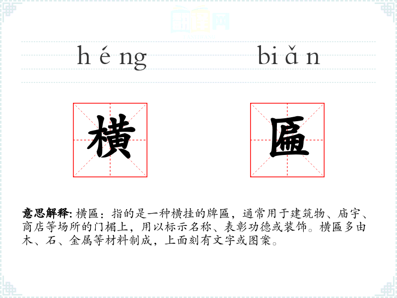 - 同义词:牌匾、匾额、横额