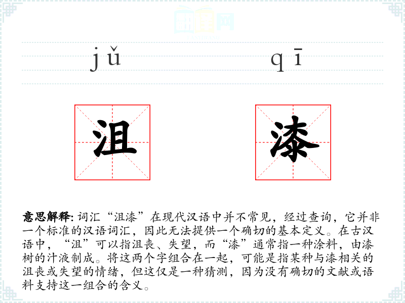 跨文化比较方面,由于“沮漆”不是一个标准的词汇,我们无法比较它在不同语言或文化中的对应词汇及其使用情况。