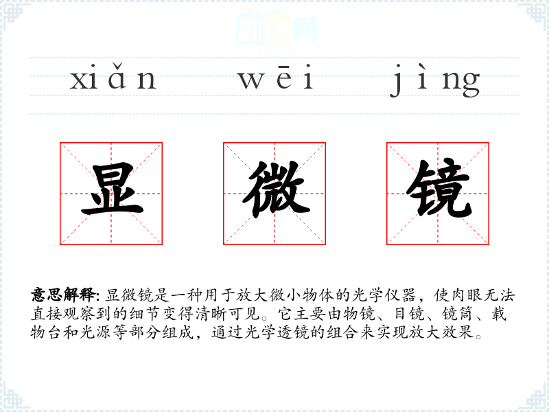 在不同语言中,显微镜的词汇有所不同,但其功能和意义基本一致。例如,英语中的“microscope”,德语中的“Mikroskop”,法语中的“microscope”,都指代相同的光学仪器。
