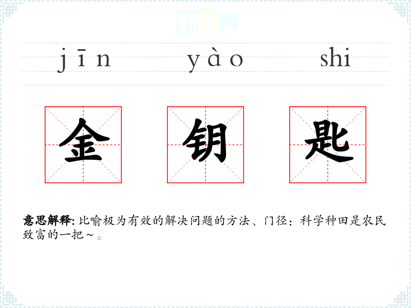 比喻极为有效的解决问题的方法、门径:科学种田是农民致富的一把~。