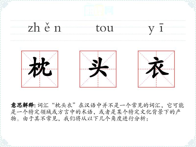 词汇“枕头衣”在汉语中并不是一个常见的词汇,它可能是一个特定领域或方言中的术语,或者是某个特定文化背景下的产物。由于其不常见,我们将从以下几个角度进行分析: