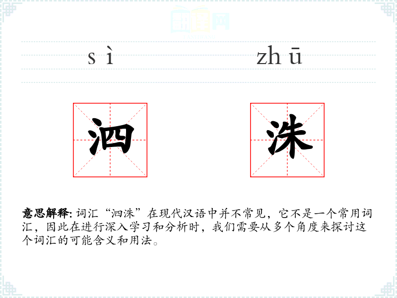 词汇“泗洙”在现代汉语中并不常见,它不是一个常用词汇,因此在进行深入学习和分析时,我们需要从多个角度来探讨这个词汇的可能含义和用法。