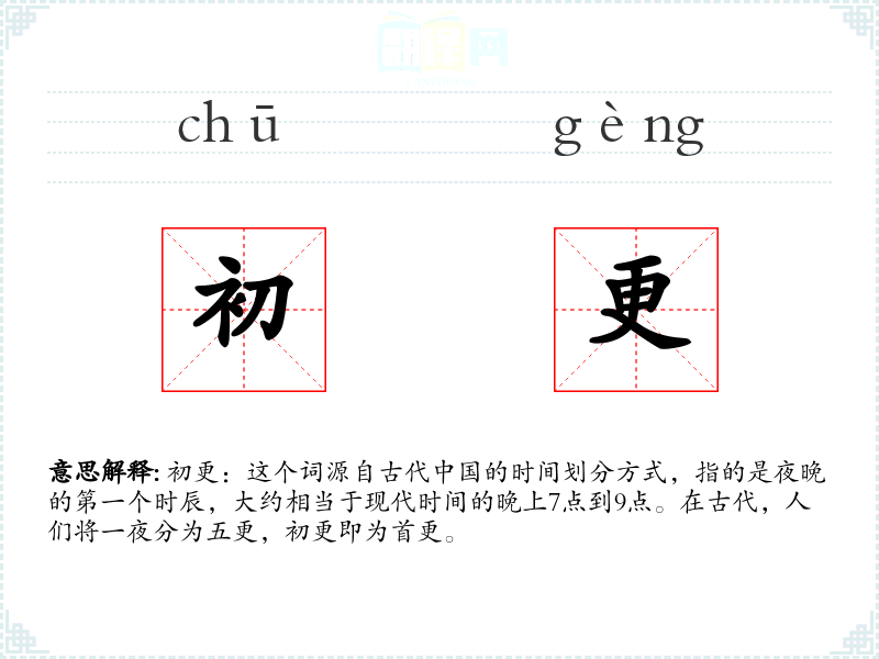 "初更"的意思解释、初更是什么意思由翻译网汉语词典查词提供。