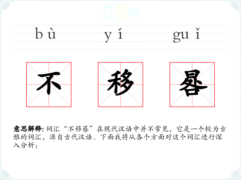 词汇“不移晷”在现代汉语中并不常见,它是一个较为古雅的词汇,源自古代汉语。下面我将从各个方面对这个词汇进行深入分析: