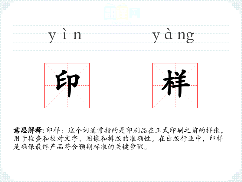 印样作为印刷和出版过程中的一个关键环节,不仅体现了技术的要求,也反映了文化和行业的特点。在语言学习和表达中,了解印样的含义和用法,有助于更好地理解相关行业的专业术语和流程。