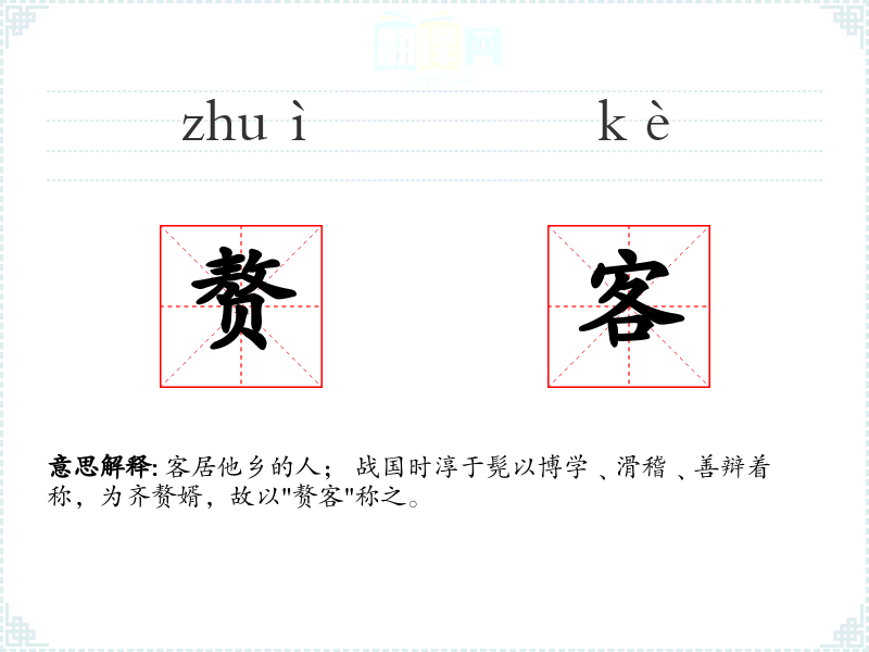 赘客的分字解释