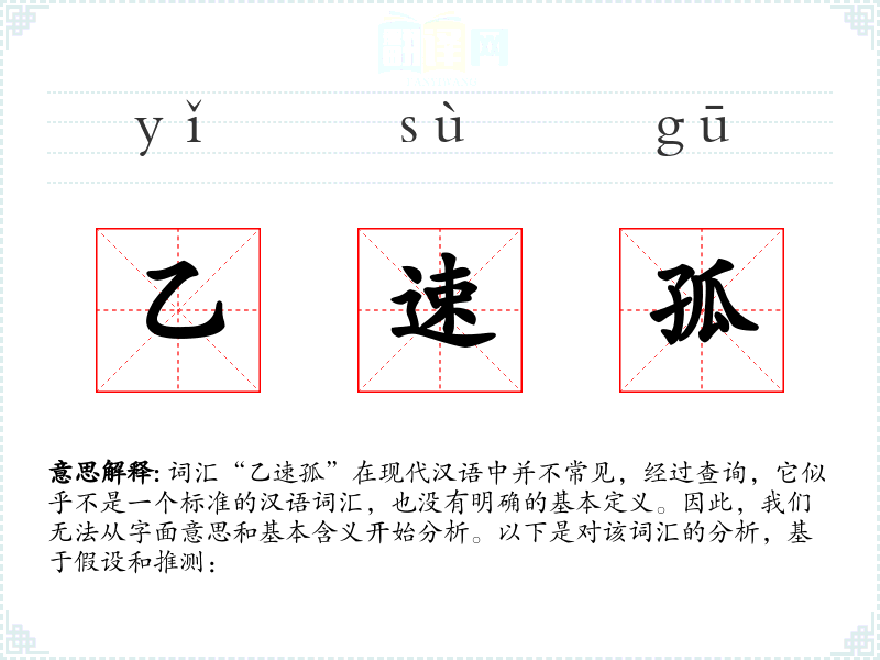 由于“乙速孤”不是一个已知的词汇,我们无法提供确切的基本定义。