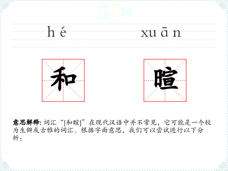 词汇“[和暄]”在现代汉语中并不常见,它可能是一个较为生僻或古雅的词汇。根据字面意思,我们可以尝试进行以下分析: