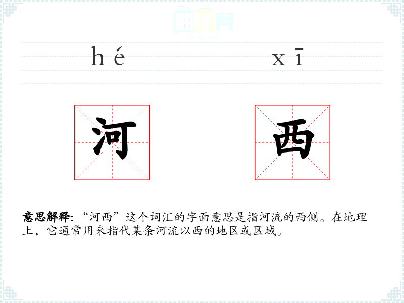 “河西”这个词汇的字面意思是指河流的西侧。在地理上,它通常用来指代某条河流以西的地区或区域。