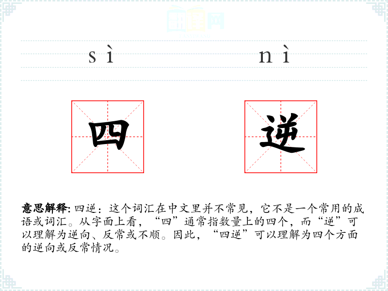 由于“四逆”不是一个常用词汇,它在不同语言或文化中可能没有对应的词汇。