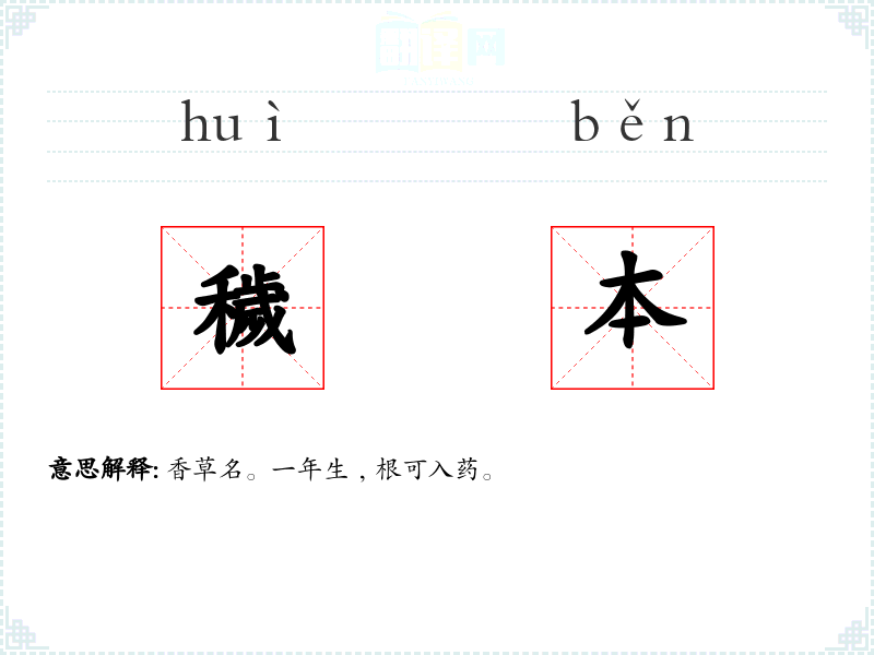 香草名。一年生﹐根可入药。