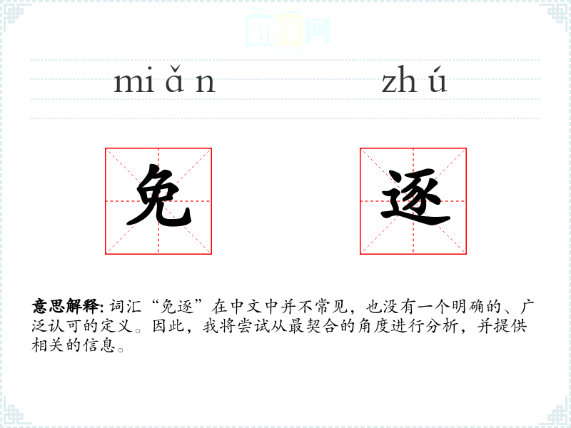 由于“免逐”不是一个标准词汇,我们可以尝试从字面意思来解释:
