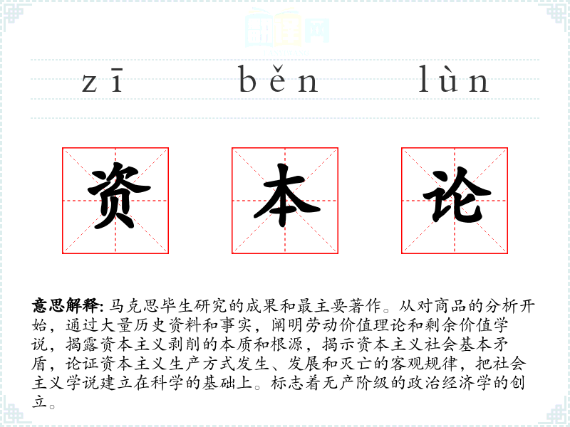 1.马克思毕生研究的成果和最主要著作。从对商品的分析开始,通过大量历史资料和事实,阐明劳动价值理论和剩余价值学说,揭露资本主义剥削的本质和根源,揭示资本主义社会基本矛盾,论证资本主义生产方式发生、发展和灭亡的客观规律,把社会主义学说建立在科学的基础上。标志着无产阶级的政治经济学的创立。