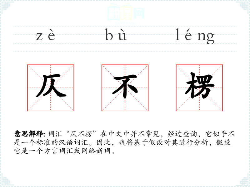 词汇“仄不楞”在中文中并不常见,经过查询,它似乎不是一个标准的汉语词汇。因此,我将基于假设对其进行分析,假设它是一个方言词汇或网络新词。
