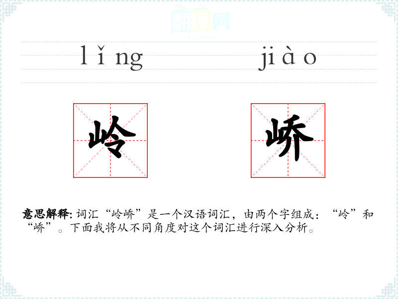词汇“岭峤”是一个汉语词汇,由两个字组成:“岭”和“峤”。下面我将从不同角度对这个词汇进行深入分析。