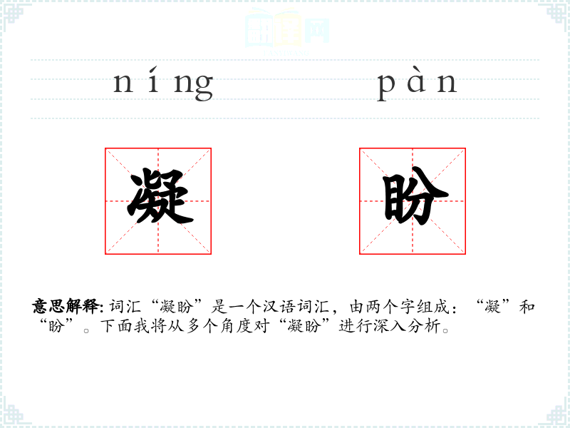 词汇“凝盼”是一个汉语词汇,由两个字组成:“凝”和“盼”。下面我将从多个角度对“凝盼”进行深入分析。