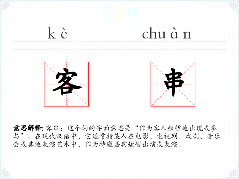 "客串"的意思解释、客串是什么意思由翻译网汉语词典查词提供。