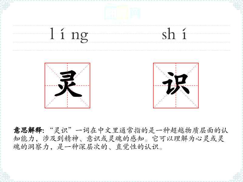 在西方文化中,类似的词汇可能是“intuition”(直觉)或“psychic ability”(心灵能力),它们在描述超感官的感知能力时与“灵识”有相似之处,但“灵识”更多地融入了东方文化中对精神世界的理解和追求。