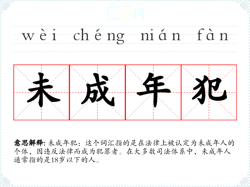 未成年犯:这个词汇指的是在法律上被认定为未成年人的个体,因违反法律而成为犯罪者。在大多数司法体系中,未成年人通常指的是18岁以下的人。
