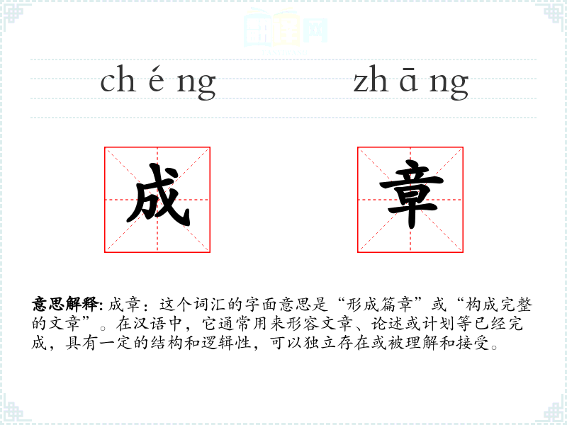 "成章"的意思解释、成章是什么意思由翻译网汉语词典查词提供。