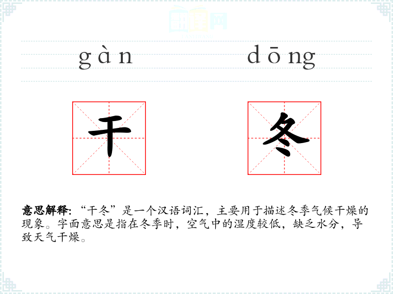 - 同义词:干燥的冬季、干冷、干旱的冬天