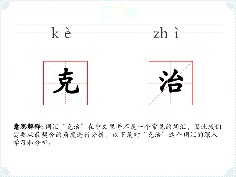 词汇“克治”在中文里并不是一个常见的词汇,因此我们需要从最契合的角度进行分析。以下是对“克治”这个词汇的深入学习和分析: