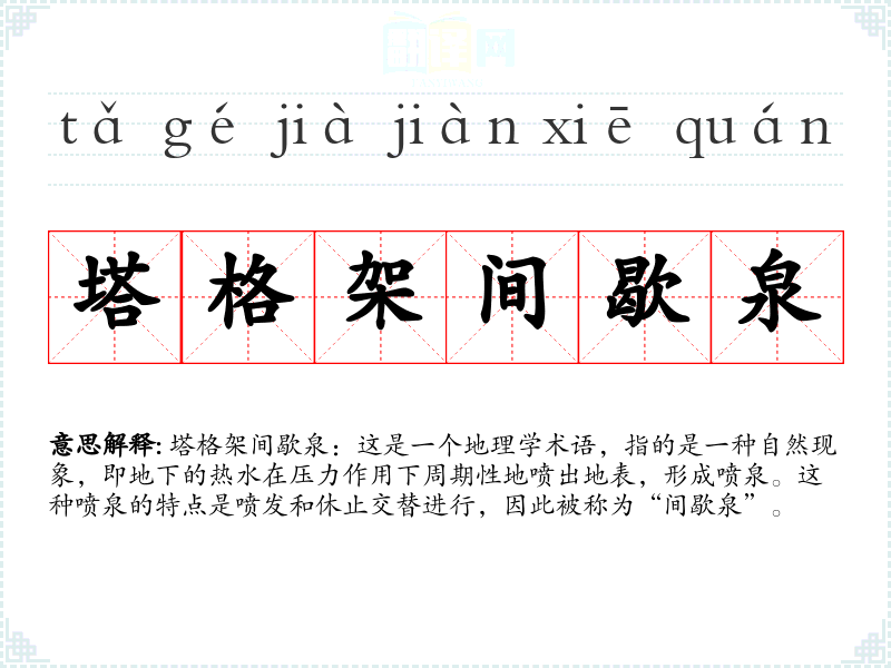 "塔格架间歇泉"的意思解释、塔格架间歇泉是什么意思由翻译网汉语词典查词提供。