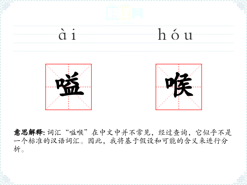 词汇“嗌喉”在中文中并不常见,经过查询,它似乎不是一个标准的汉语词汇。因此,我将基于假设和可能的含义来进行分析。