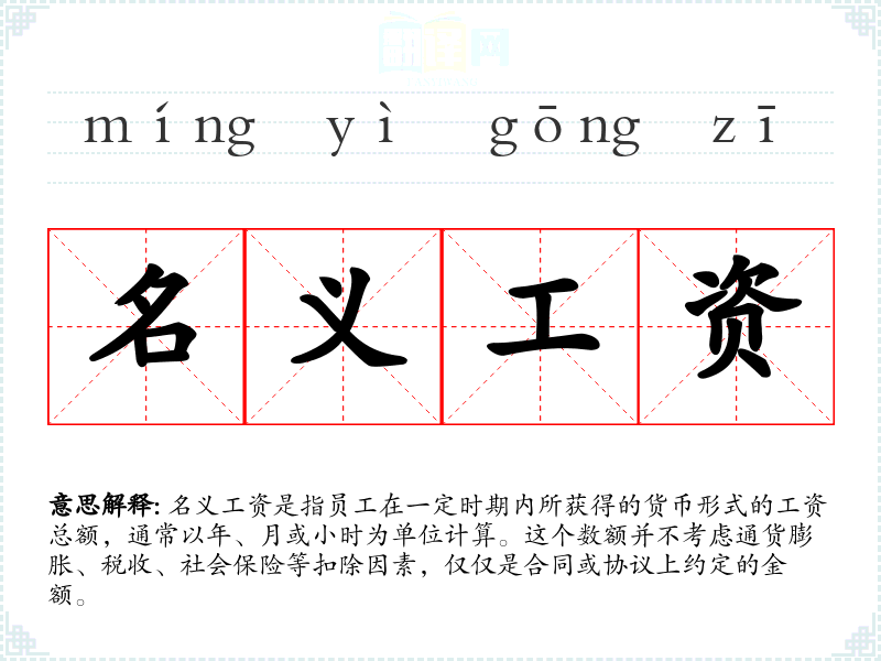 "名义工资"的意思解释、名义工资是什么意思由翻译网汉语词典查词提供。