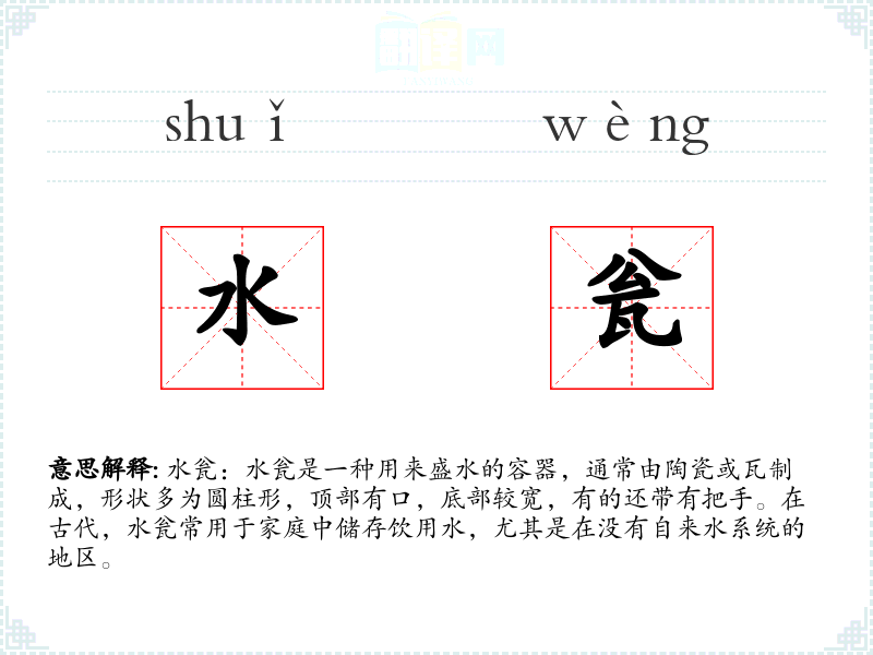 "水瓮"的意思解释、水瓮是什么意思由翻译网汉语词典查词提供。