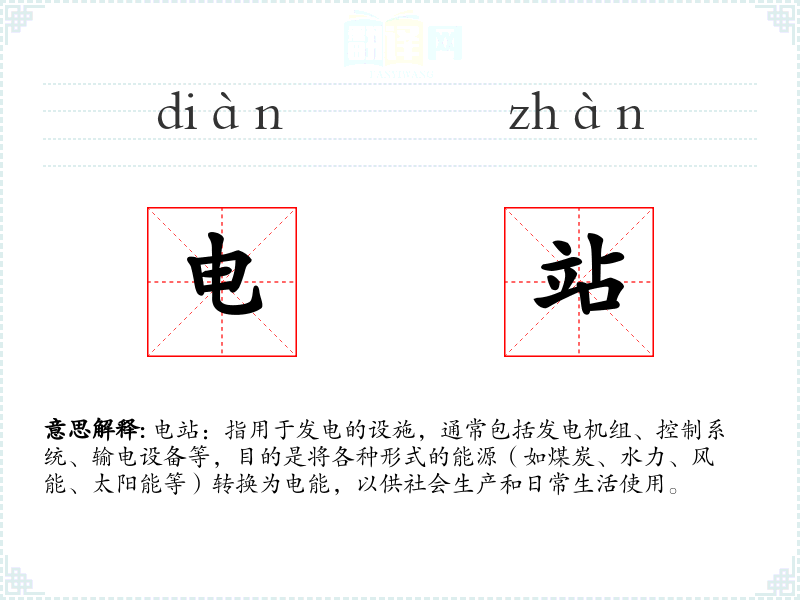 - 反义词:用电站(非正式,指消耗电能的设施)
