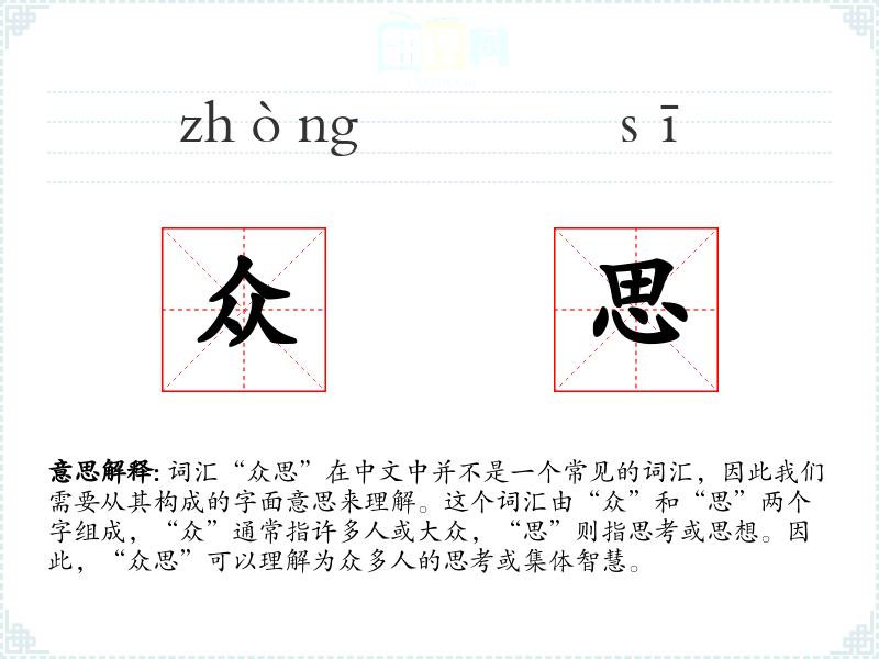 - 专业领域:在管理学或社会学中,“众思”可能与集体决策、民主管理等概念相关。