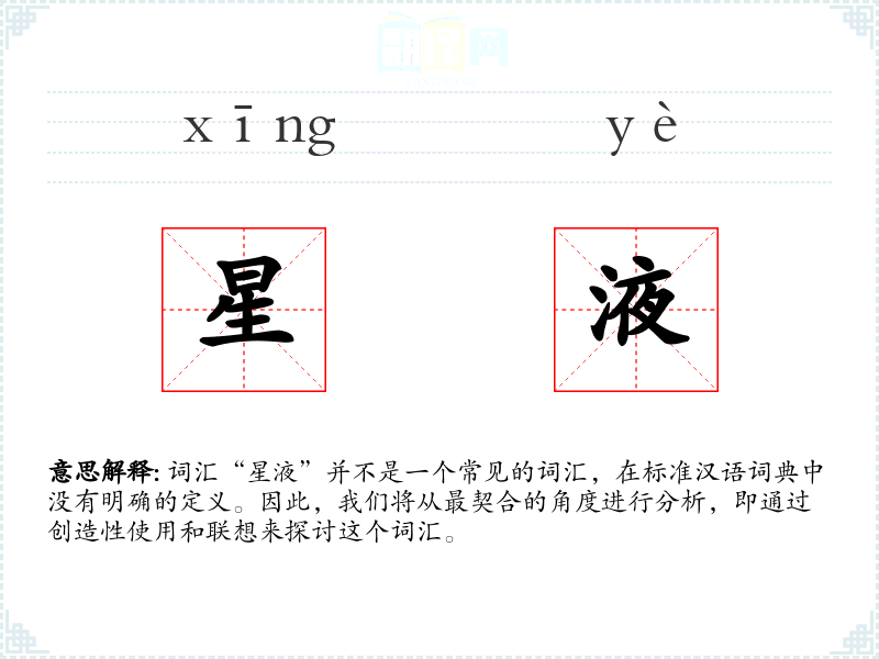 - 反义词:无(由于“星液”不是一个标准词汇,很难找到直接的反义词)