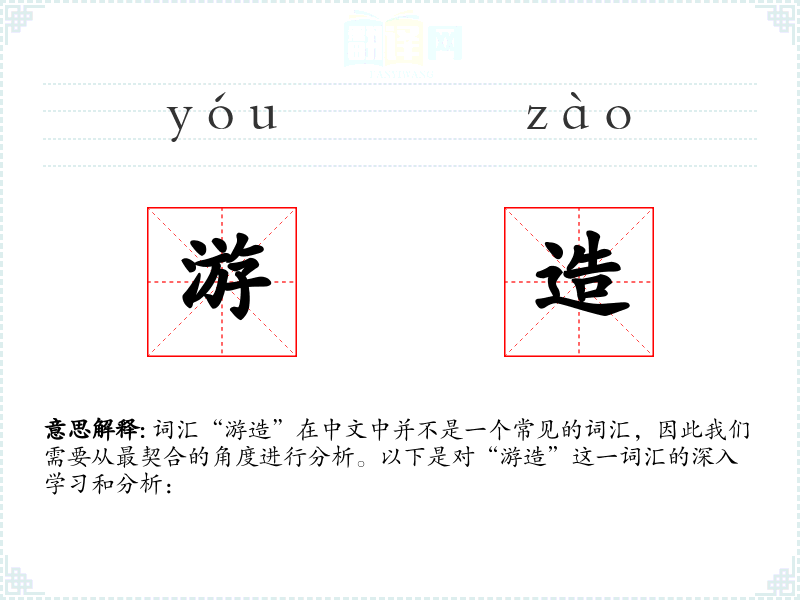 词汇“游造”在中文中并不是一个常见的词汇,因此我们需要从最契合的角度进行分析。以下是对“游造”这一词汇的深入学习和分析: