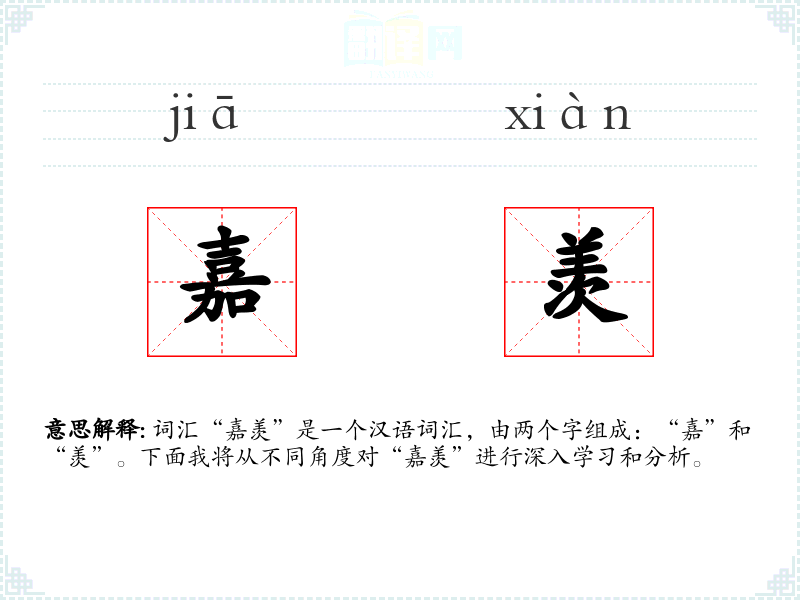 - 词源:“嘉”和“羡”都是古汉语词汇,历史悠久。