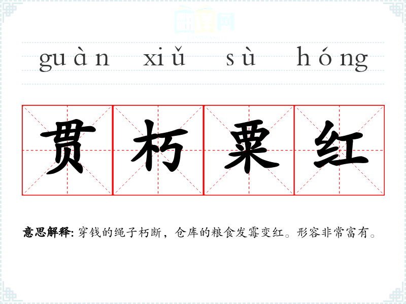 穿钱的绳子朽断,仓库的粮食发霉变红。形容非常富有。